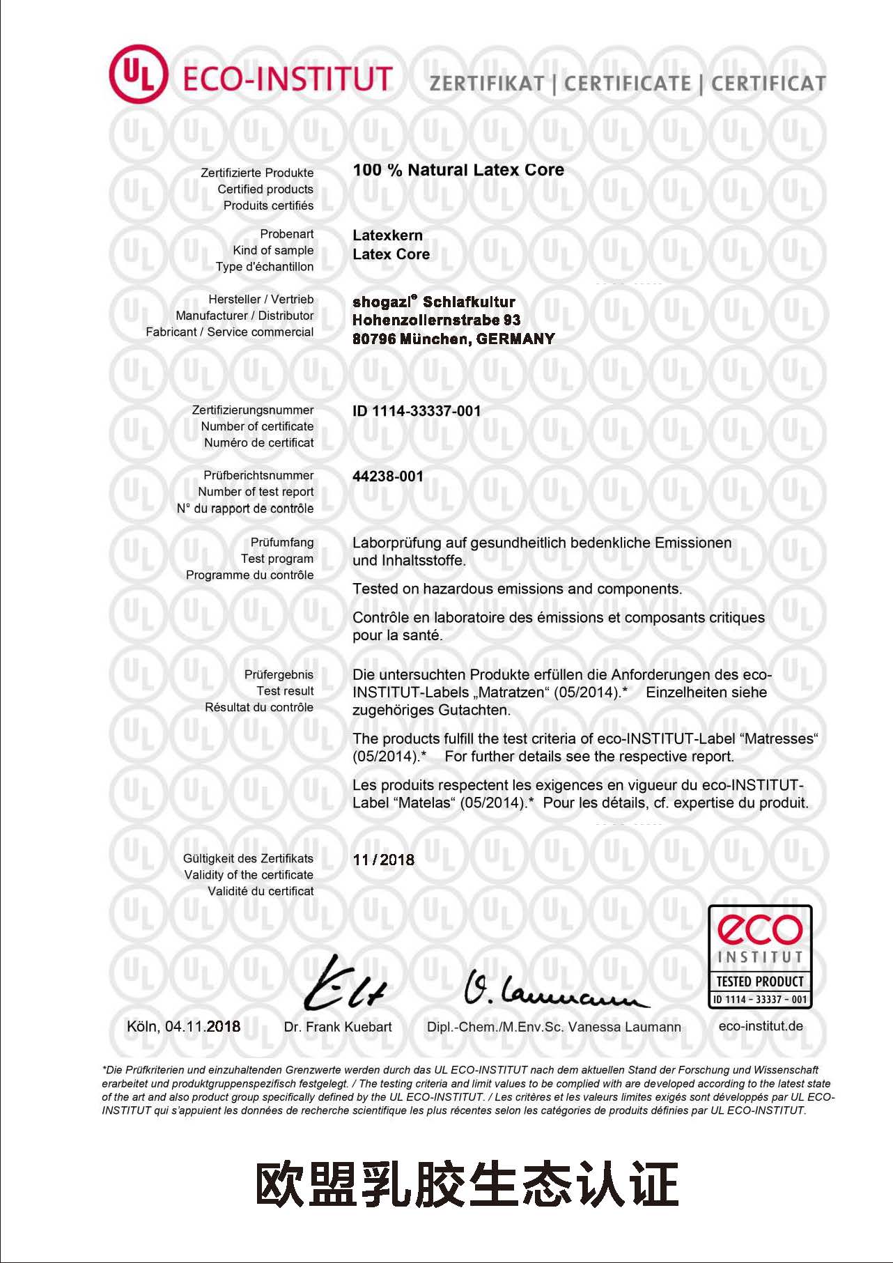 唯一獲得德國(guó)TUV萊茵認(rèn)證的床墊品牌