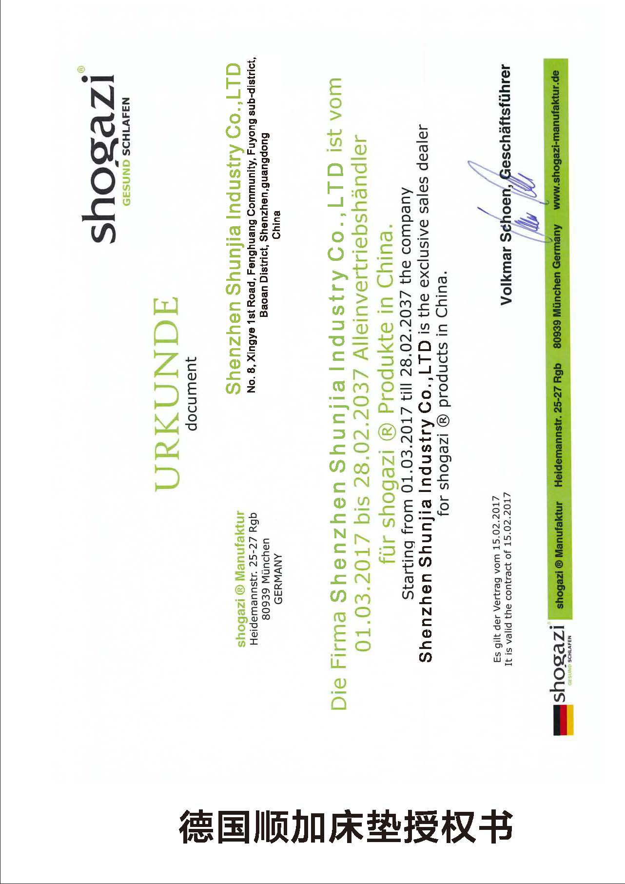?Shogazi@是一家德國(guó)制造的床墊制造商,同時(shí)又是一個(gè)整體睡眠系統(tǒng)的服務(wù)商,熱衷于使用自然界有價(jià)值或可再生的原材料制造高質(zhì)量的健康睡眠系統(tǒng)。1988年,shogazi的擁有者(Ihr VolkmarSchoen)福爾克馬爾舒恩取得了寢具生產(chǎn)許可,生產(chǎn)工廠地址;工廠坐落于德國(guó)慕尼黑的海德曼大街25-27(Heidemannstr. 25-27 80939 München。德國(guó)慕尼黑恩索倫街93號(hào),公司總部及旗艦店所在地, 1988年至今暢銷德國(guó)30多年,目前在歐洲及韓國(guó)共有48家戰(zhàn)略合作伙伴。
